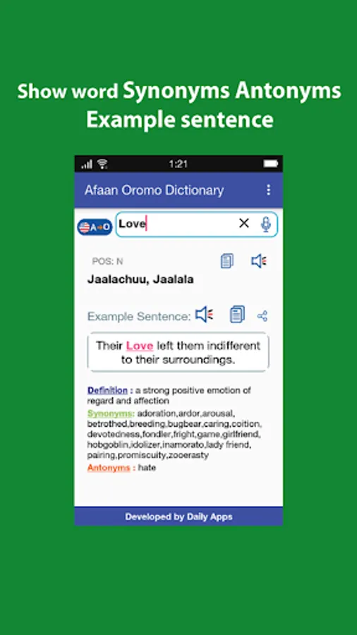 English to Afaan Oromo and Afaan Oromo to English Dictionary Offline.