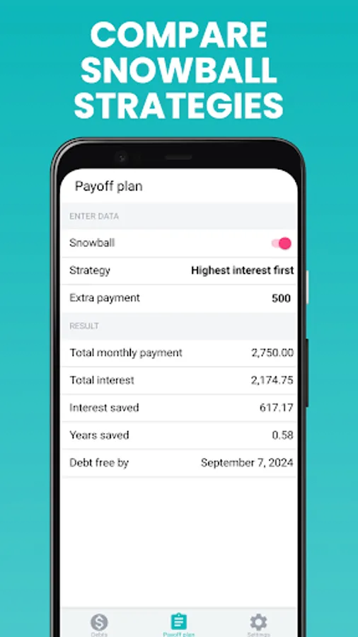 Fastest payoff - The app calculates the cheapest and fastest method of paying off your entire debt.