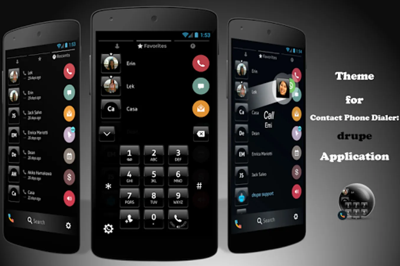 Contacts Phone Dialer: drupe is a free, smart and colorful dialer replacement application for Android that can change its looks with many free themes. With just one swipe, drupe brings your contacts and communication apps to one screen.