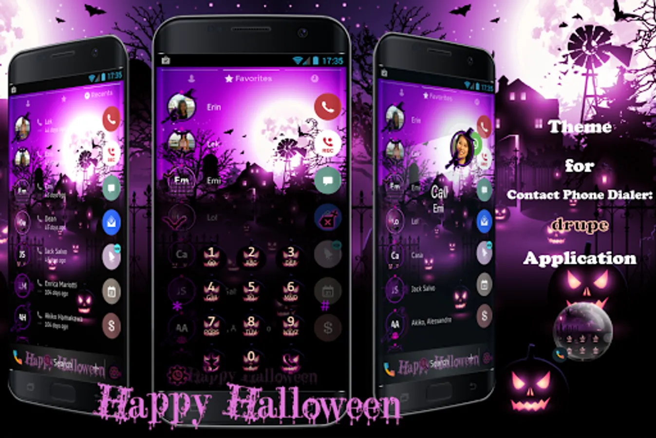 This sharp design with beautiful shades of pink and fuchsia will certainly make you feel happily scared with this free theme for drupe Contacts & Dialer application.