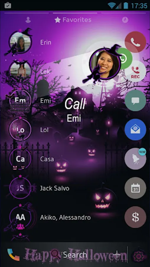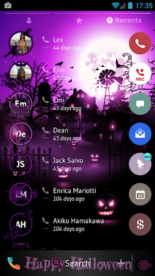 Halloween is in the air… and on your phone! Black Pumpkin shaped buttons with glowing eyes will remind you of the upcoming Halloween night whenever you make phone calls or view on your phonebook.