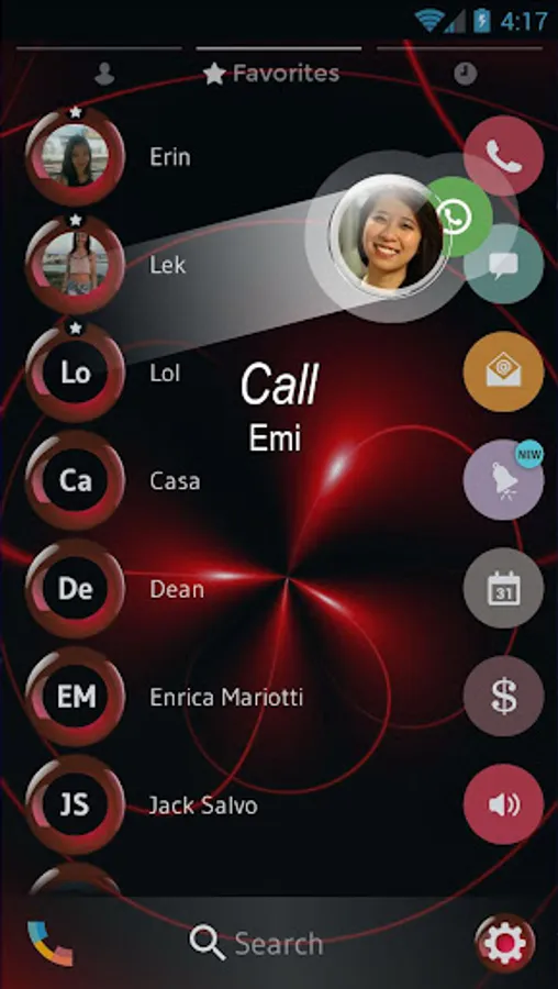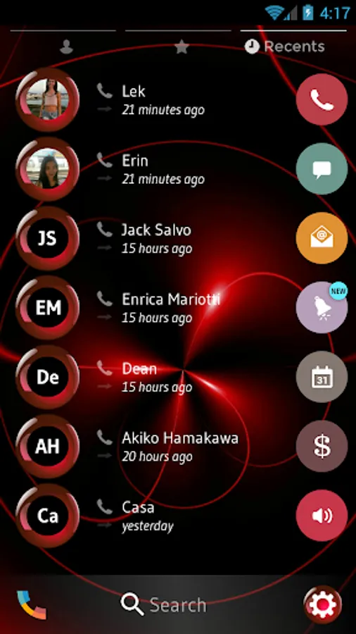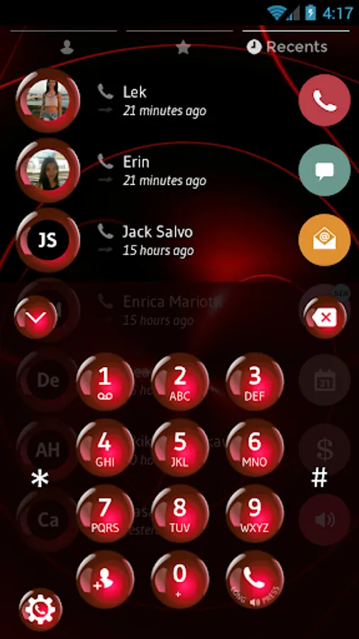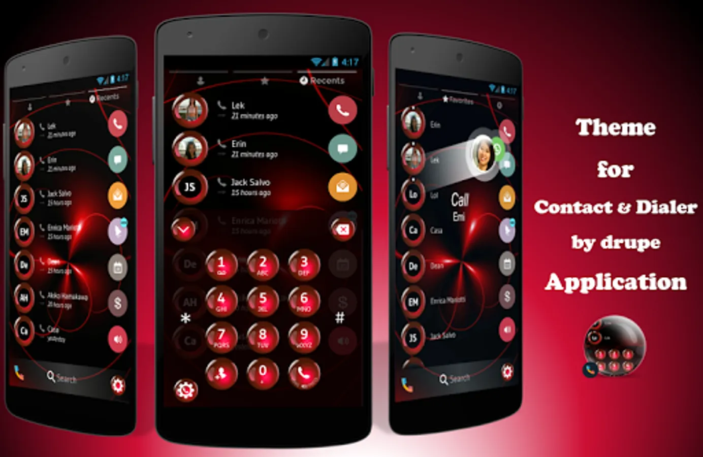 With a unique design for unique people, we bring you the beautiful red bubble theme for drupe contacts and dialer. This is a theme with red circle spherical keys over a black and ruby red shiny background. This free dark theme for drupe Contacts & Dialer application will give that extra special look to your phonebook and your dialer!