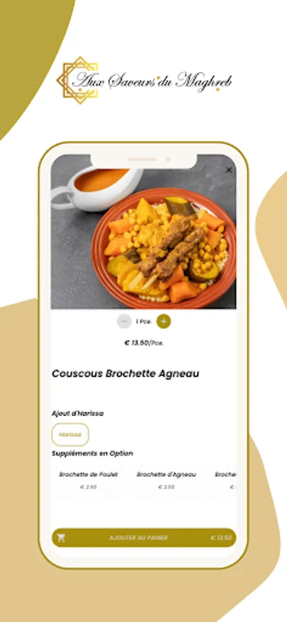Wherever you are, with the Aux Saveurs du Maghreb app, you can order carefree from the wide range.