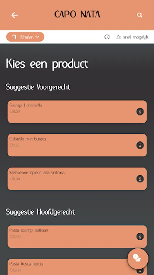 Wherever you are, with the Capo Nata app you can order from the extensive range without worry.