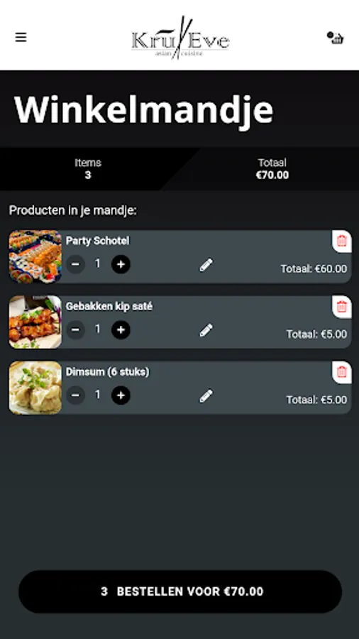 Wherever you are, with the Kru Eve Asian Cuisine app you can order from the extensive range without any worries.