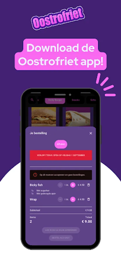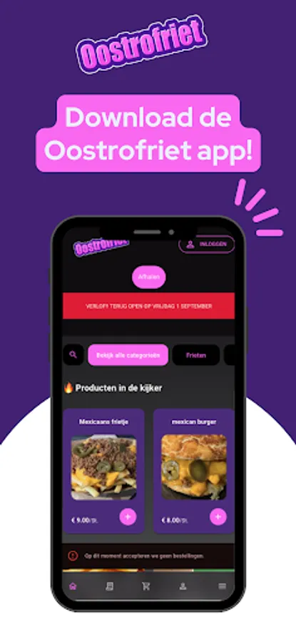 Wherever you are, with the App of Oostrofriet you can order without worry from the extensive assortment of fries, burgers, snacks, ...