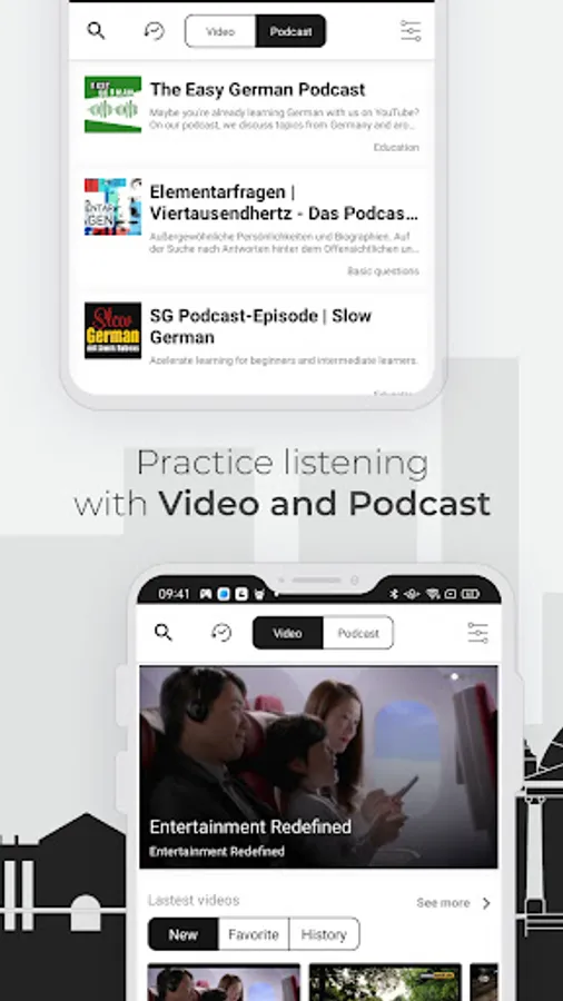 - Attractive videos and podcasts, help you practice listening skills, supplement vocabulary and grammar in real contexts.