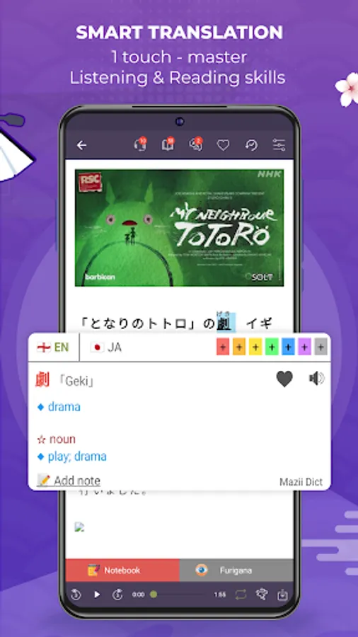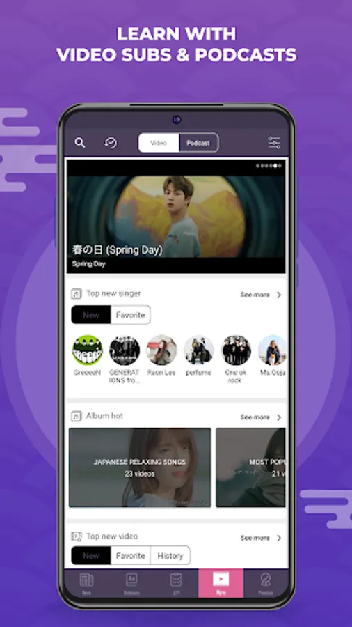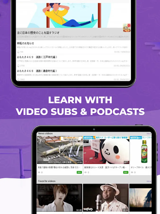 Adjust audio speed, change reading voice. Listen and repeat to improve listening and pronunciation skills. Practice listening and learning Japanese culture through videos and podcasts. Learn Japanese with music through Japanese songs for double fun.