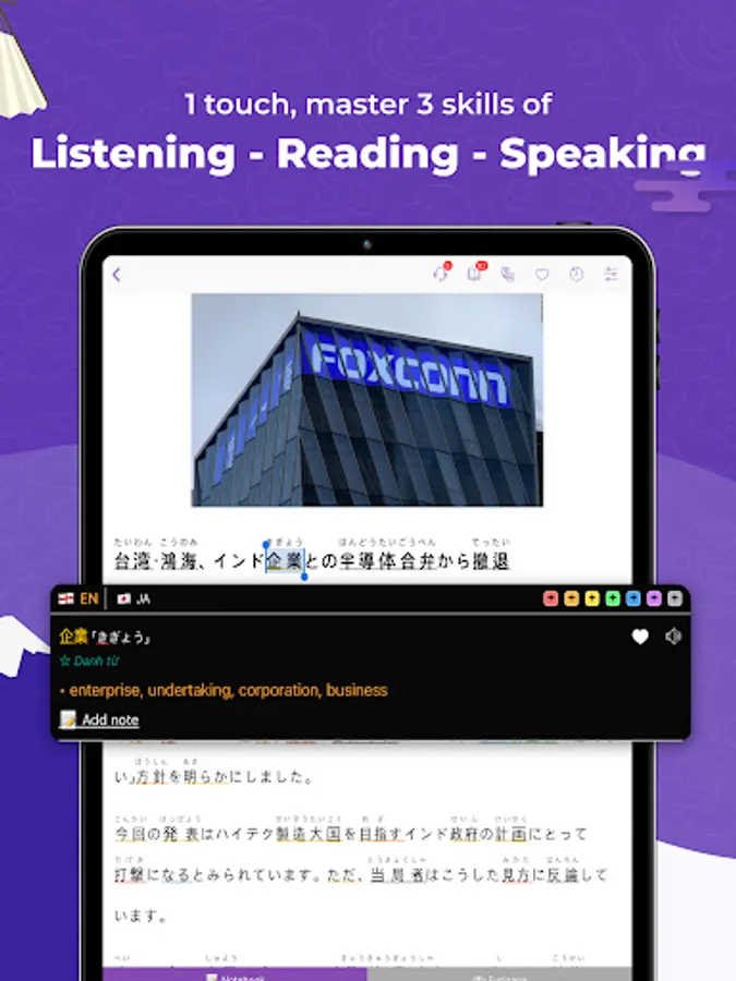 Speak and listen Japanese like a native speaker by practicing every day through reading and listening to the hottest Japanese news.