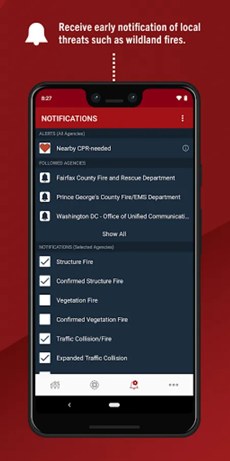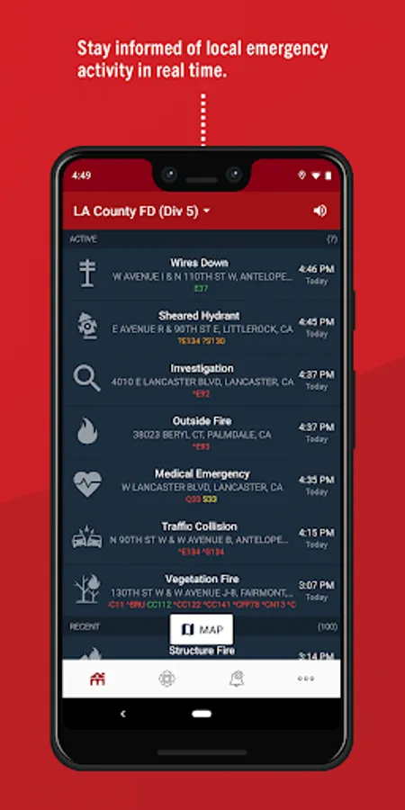 PulsePoint helps create an informed and engaged community that drives a “Culture of Action,” a key strategy in strengthening the Chain of Survival for cardiac arrest victims. In addition to nearby “CPR-needed” notifications, you can choose to be notified of significant events that may impact you and your family. These informational notifications provide an early heads-up to local threats such as wildland fires, flooding and utility emergencies. You can even monitor live dispatch radio traffic for most PulsePoint-connected communities with a simple tap on the speaker icon.