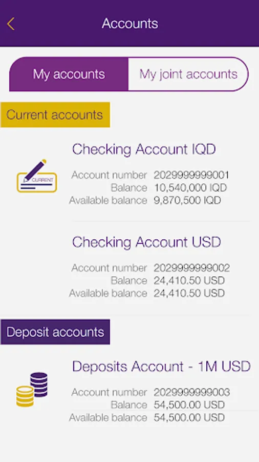 • Perform real-time transfers; make same- or cross-currency transfers between IQD and USD.
