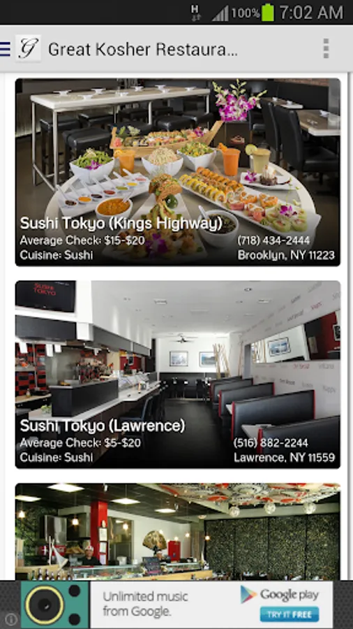 Are you looking for more than just a restaurant name, address and phone number? With the Great Kosher Restaurants app, you get that and a whole lot more. Included in this easy-to-read, easy to-use app is over 200 quality photos, menus, detailed descriptions, ability to make a reservation, send an email to the restaurant, ask "The Restaurant Guy" a question, directions, coupons, etc.