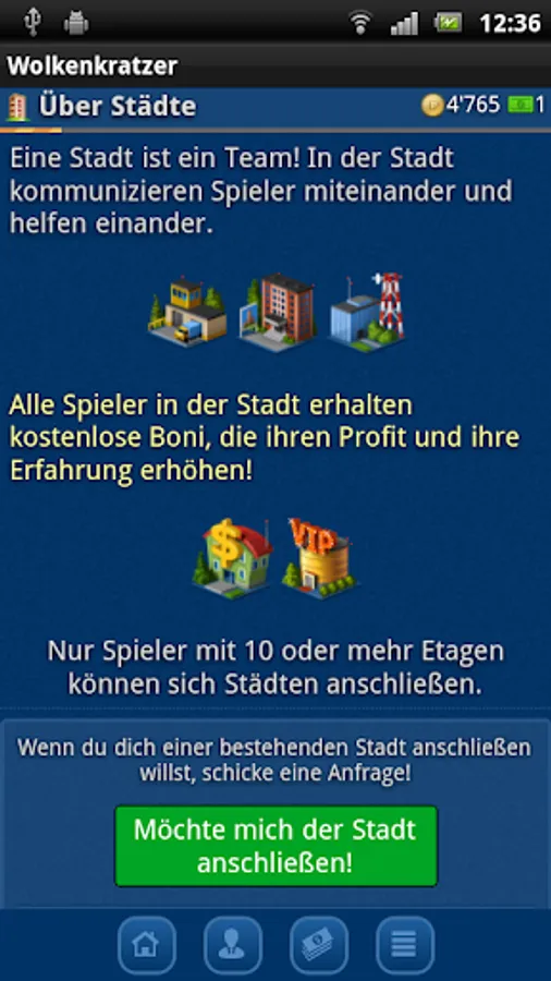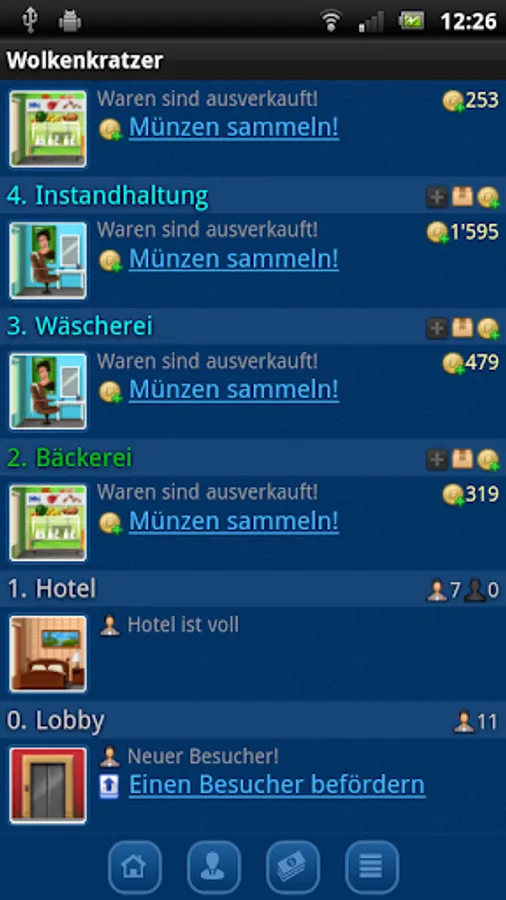 This allows you to earn coins. However, to earn dollars, you have to actively participate in the life of the skyscraper.