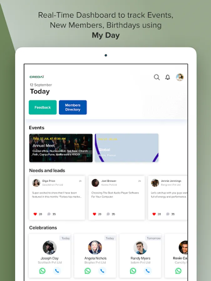 The broadcast channel will give latest updates of events, meetings etc. You can confirm your attendance, you can rate the events by giving your feed backs.