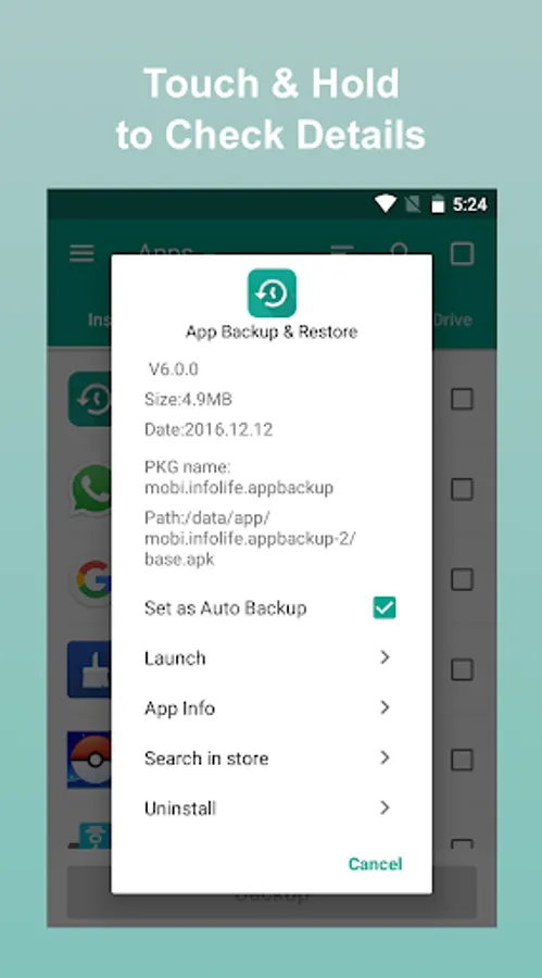 · Touch & Hold apps to check details