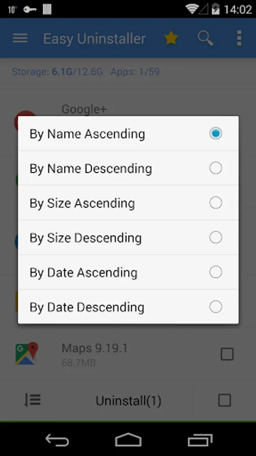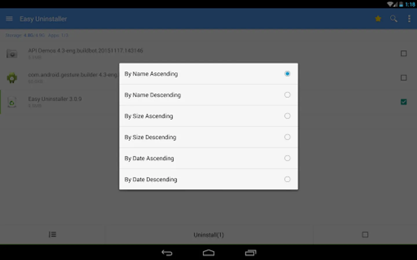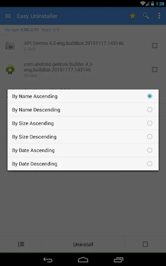 Easy Uninstaller also supports app search & sort. Type keyword in the textbox on the top to search the app that you want to uninstall. Click "Menu"->"Sort" to sort the apps in many sort types.