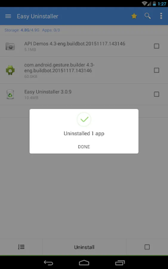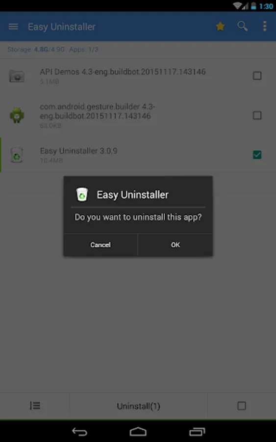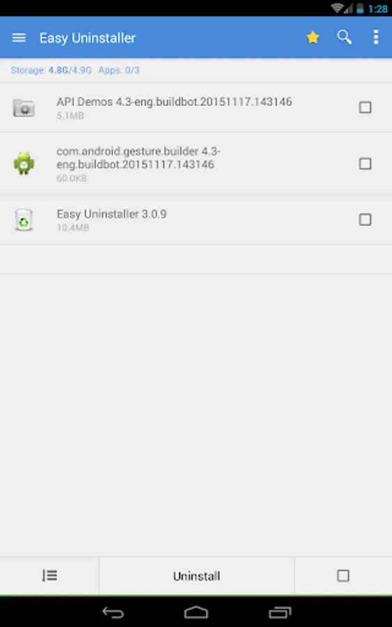 Easy Uninstaller is a tool to uninstall apps for android phones. It is quite easy to use, you can select multiple apps that you want to uninstall, and click "Uninstall Selected Apps" button to uninstall them.
