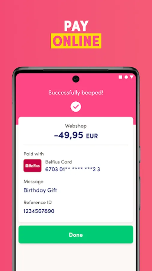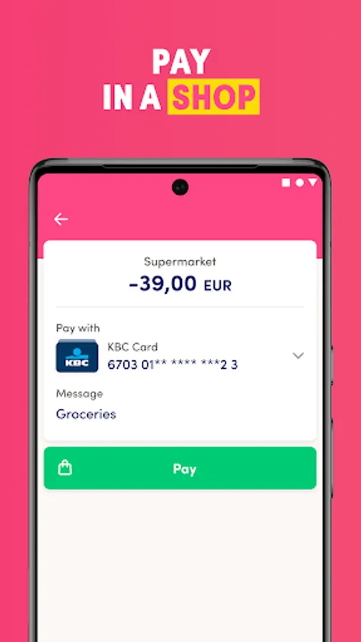 Fast, simple mobile payments are within hand’s reach. Connect your Bancontact card, link your bank account to the app and you can start making mobile payments right away. Without jeopardising security: you confirm every payment using your personal PIN code. It’s really quick and easy!