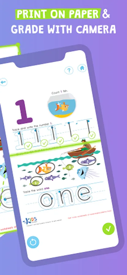 With Computer Vision algorithms, the app analyzes results and provides an accurate assessment to the little learner in real time. Complete tasks on the screen or in printable worksheets on paper, while getting checked and scored at the tap of your finger.