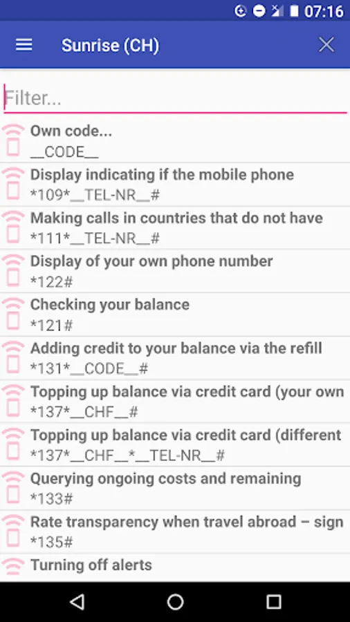 Configure various settings for your phone by using the USSD codes provided by your phone carrier.
