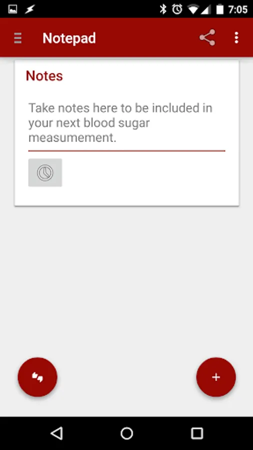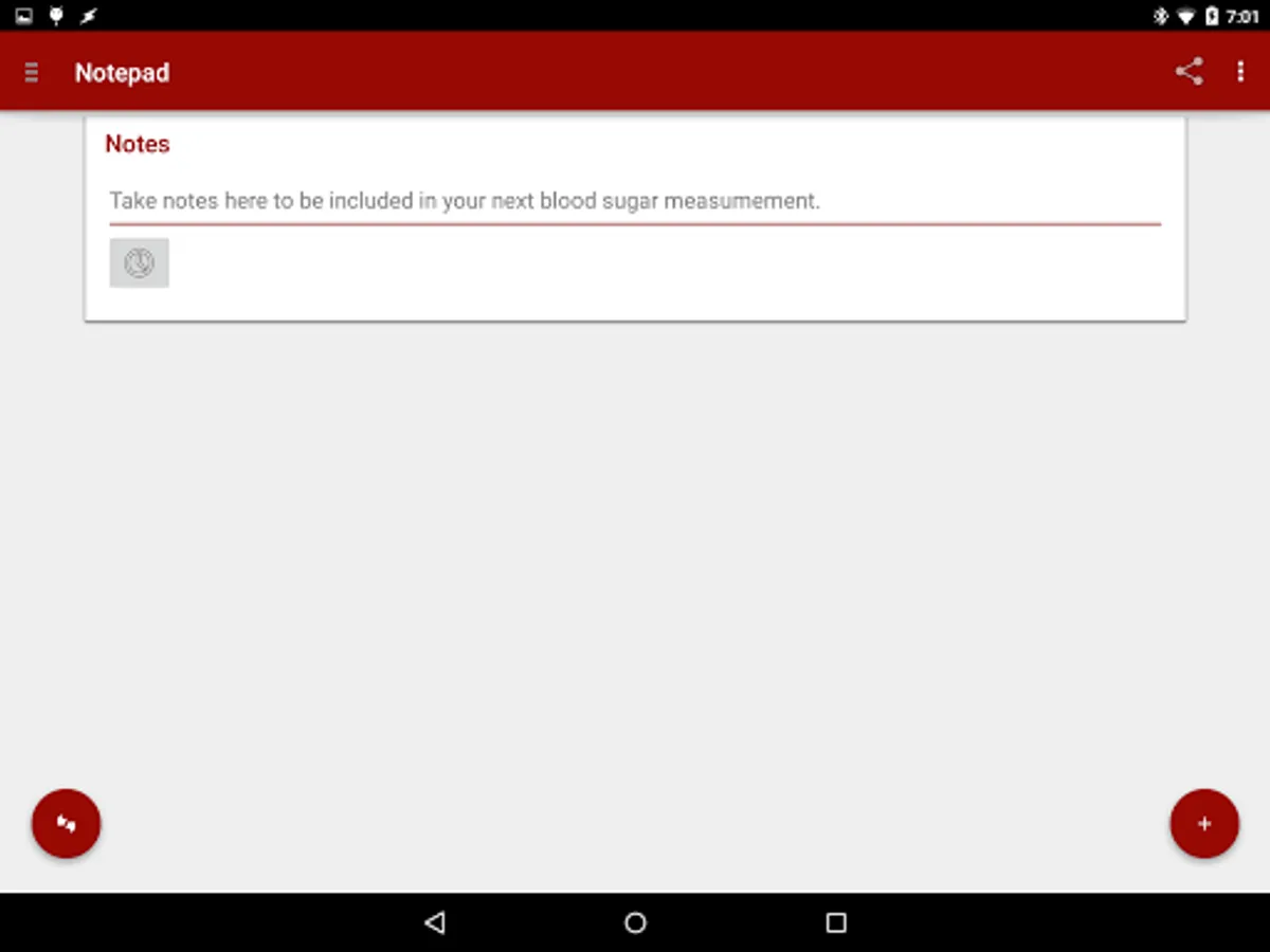 - Notepad: take notes throughout the day. The next time you record a blood sugar reading, we'll add them to the notes for you.