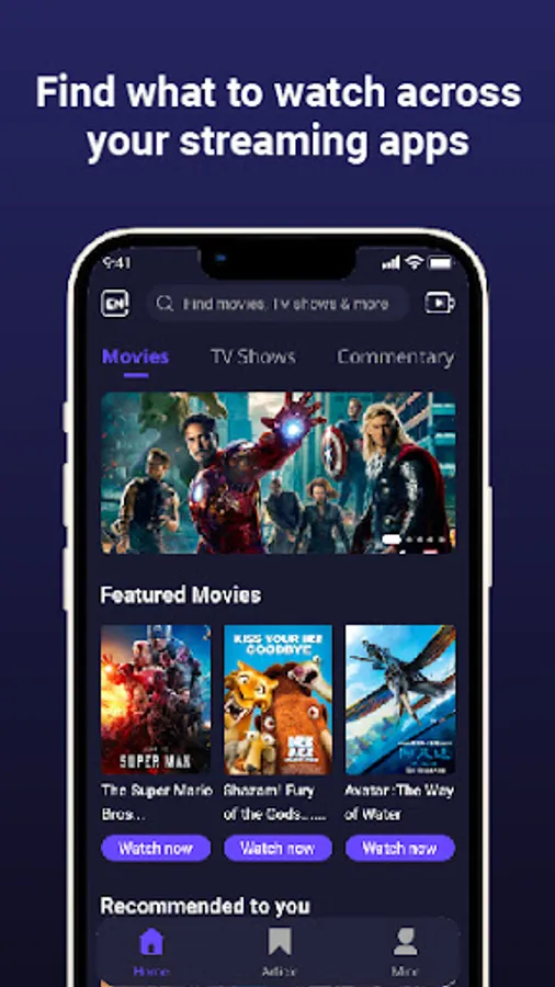 • Search Engine: 10,000+ movies and TV shows listed, with their trailers, synopsis, cast, Rotten Tomatoes ratings and IMDB ratings.