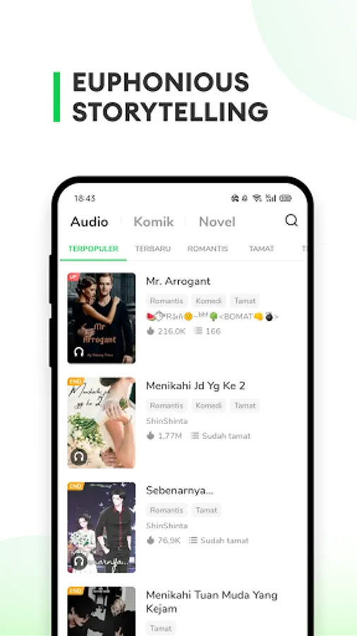⭐You may find various kinds of podcast and local Indonesian audio stories. Gossip, life stories, technology, horror stories and anecdotes. Listen to the audio and chat with the podcaster and join the Indonesian audio community.