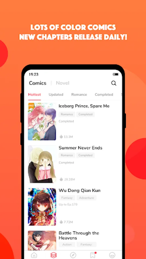 All the web comics are colorful. Different comics in Action, Romance, Boys' love, Comedy, Horror, Wuxia and more, are updated daily.