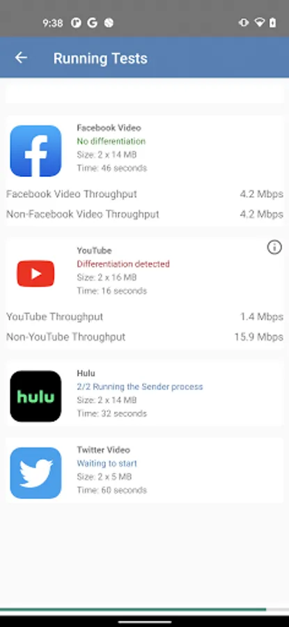By performing free tests with Wehe on your mobile device, you are participating in an IRB-approved research project at Northeastern University (led by Dr. David Choffnes) and you are helping to identify potential violations of net neutrality. Note that no conclusion can be drawn from an individual result of the type "Differentiation detected" to characterize a breach of Regulation (EU) 2015/2120 on Open Internet.