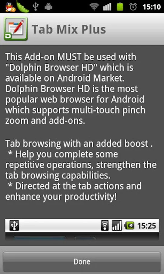 Dolphin Tab Mix Plus is an exclusive Add-on for Dolphin Browser. For more Add-ons, visit: http://bit.ly/AndroidAdd-onList