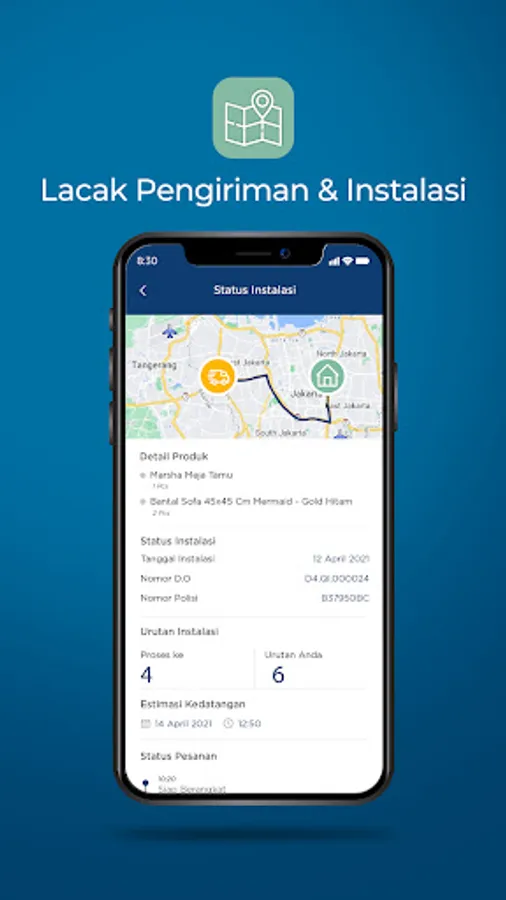Memberi pantauan terupdate seputar status pengiriman serta pemasangan barang hingga selesai.