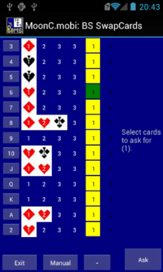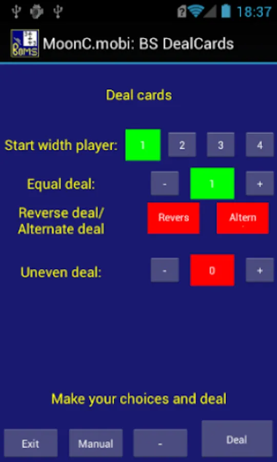 After a game is finished the app will automatically set up for a new game where the last Boms becomes the new dealer that decides on mix of cards and deal. The first player will be the last President. Card swaps are included.