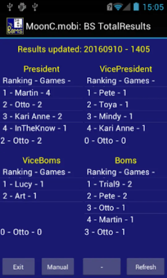 Rankings: President, VicePresident, ViceBoms, Boms