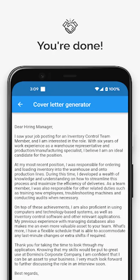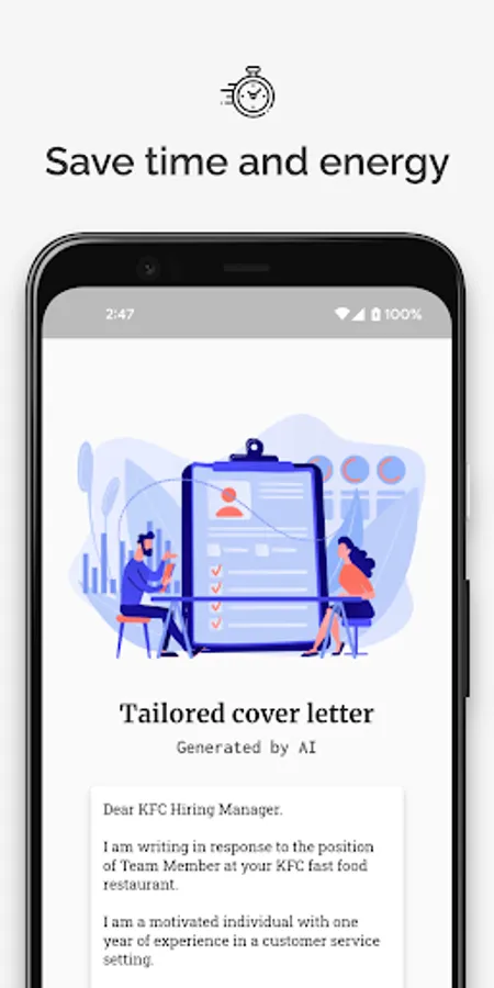 2️⃣ Tap 'Generate' and receive your personalised cover letter.