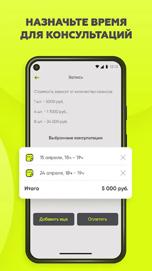 - View all paid consultations and reminders of the start of classes. If, for example, the time has come for a consultation with a psychologist, but he has not yet contacted, then there is an opportunity to write to the chat or call him on your own.