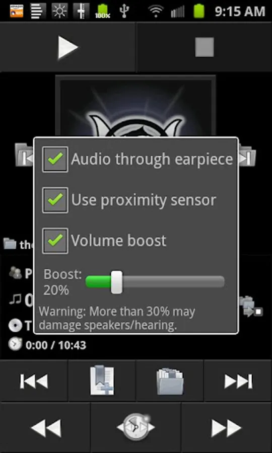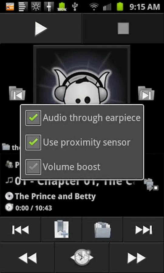 Listen to audio books and music through your phone's earpiece when you don't have earphones handy. Boost your audio (Android 2.3 through 4.1 or so only, not working on 4.2.1 or higher), whether through earpiece or through the speaker.