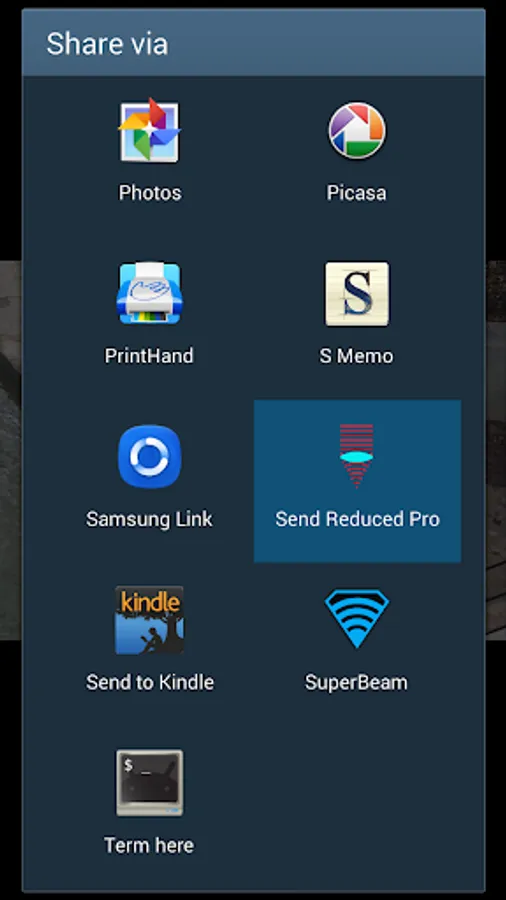 Send Reduced lets you share reduced resolution photos by text or email with the minimum number of taps.