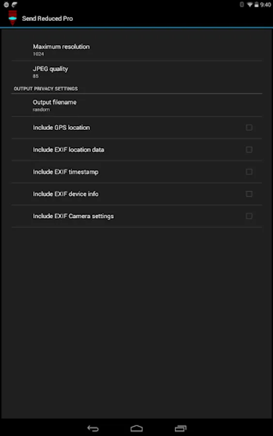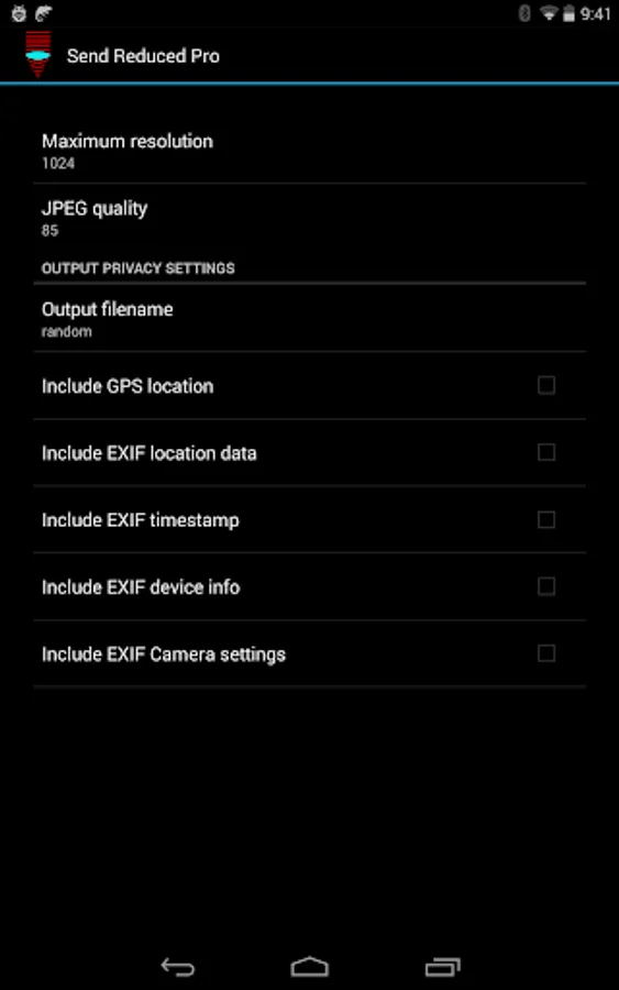 You can adjust the resolution and quality of the reduced photo by running Send Reduced from your launcher.