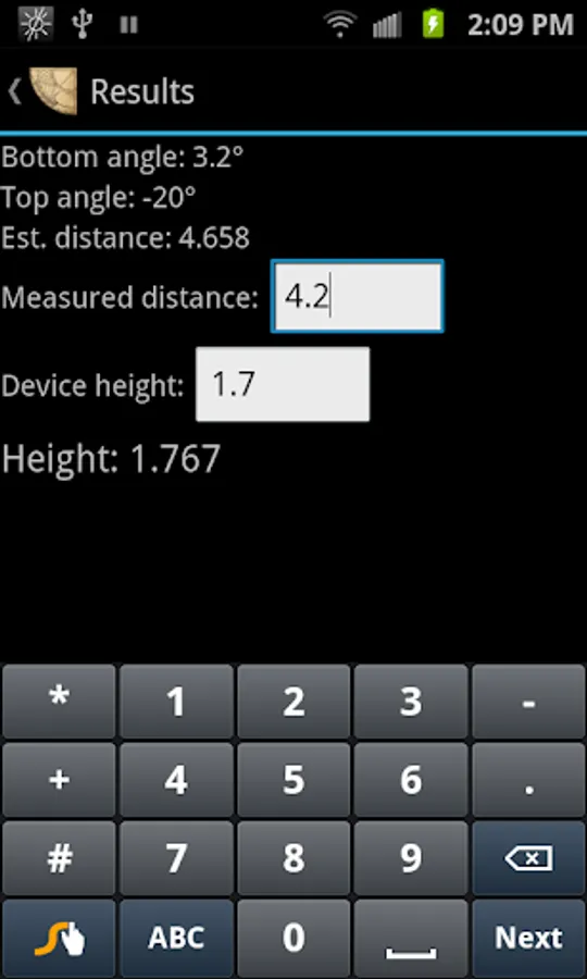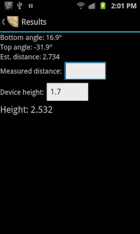 Quick instructions: Point at bottom of object, tap on screen. Point to top of object, tap on screen. Enter distance to the object and the height at which you are holding your phone (probably a little less than your own height).