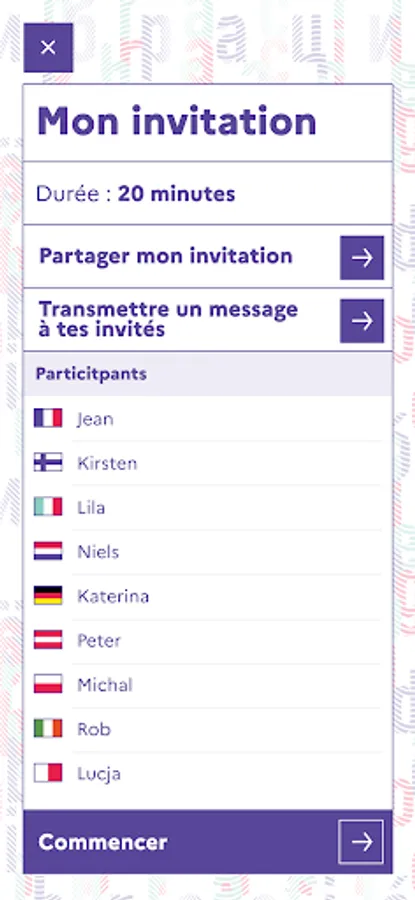 DANSE L'EUROPE ! is a choreographic mobile application that all European citizens can experience during the French presidency of the Council of the European Union, from January to June 2022. The application allows amateur dancers of all ages, or non-dancers, to meet and share a dance moment in multiple public places in different European cities, but also at home, i at work, at school… You can also decide to discover this experience on your own. Using your mobile phone and headphones, you perform a dance accessible to all thanks to the audio guidance of choreographer Angelin Preljocaj. This audio guidance is available in the 24 official European languages. You are guided by voice, first in a simple warm-up, then through nine minutes of a playful and joyful choreography.