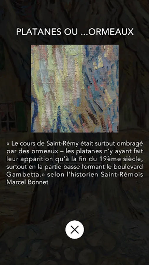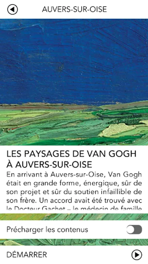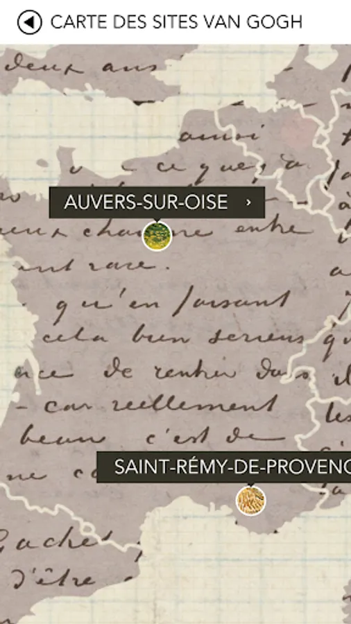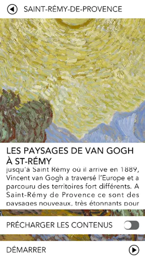 Van Gogh Still geolocation application is a multimedia guide allowing you to discover the work of Vincent van Gogh through the landscapes he painted. The painter's works are placed in context, along trail in Auvers-sur-Oise and Saint-Rémy-de-Provence.