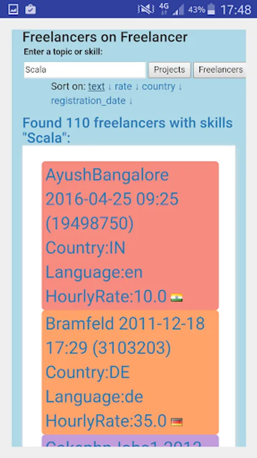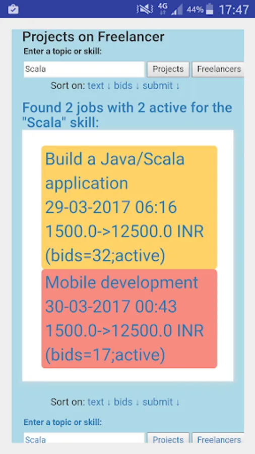 This Application enables Fast Interactive Searching for Projects or Freelancers.
