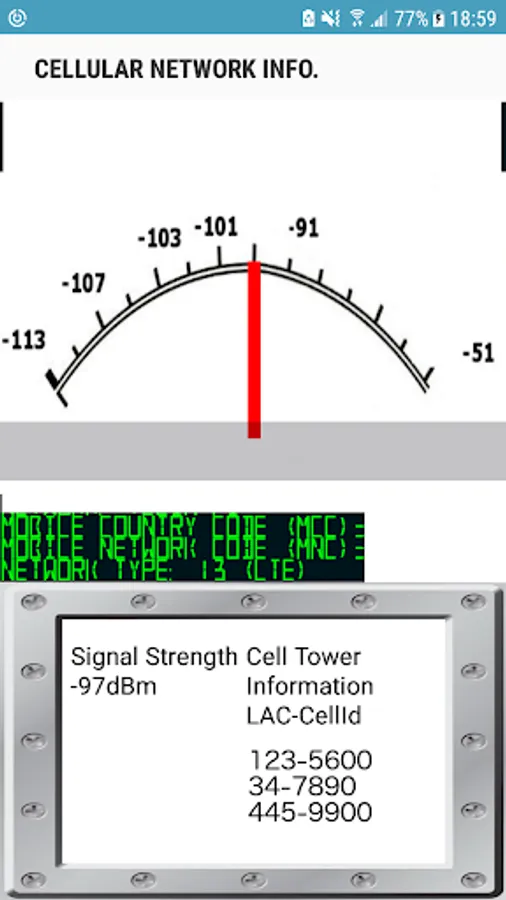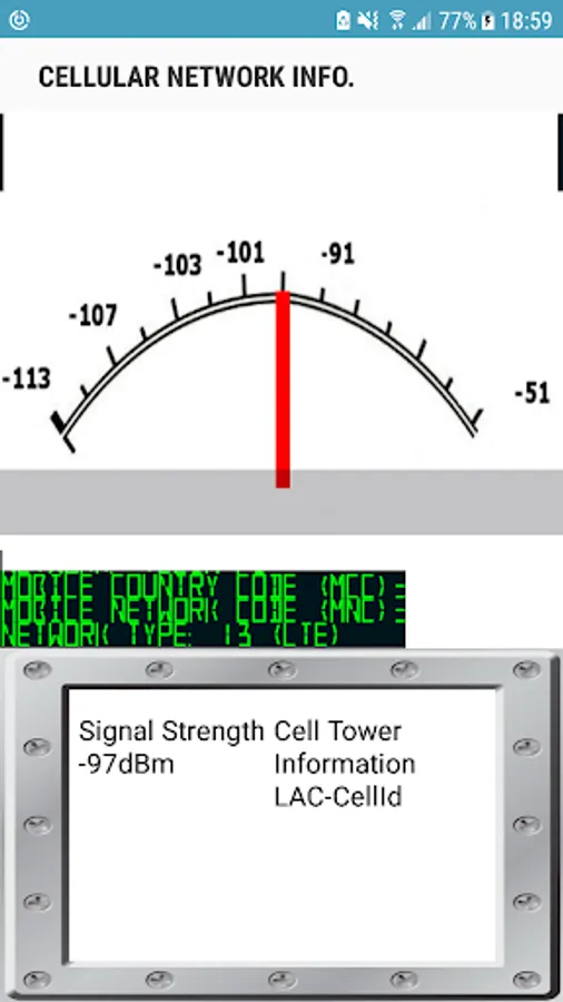 Cellular Network Info, real-time measurements on your phone about the signal strength and cell information.