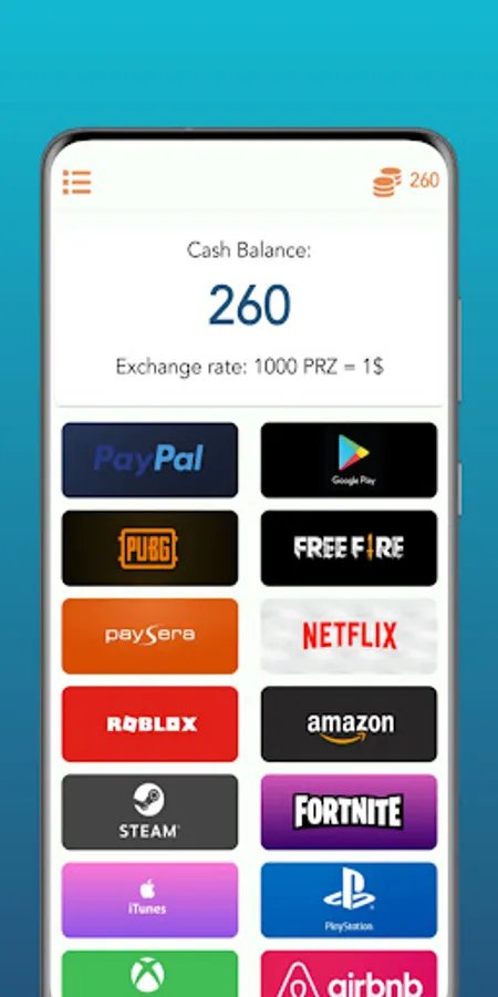 6) Redeem your credit rewards for cash via PayPal, Amazon, Pubg Mobile UC, Gift Cards, And CCP.