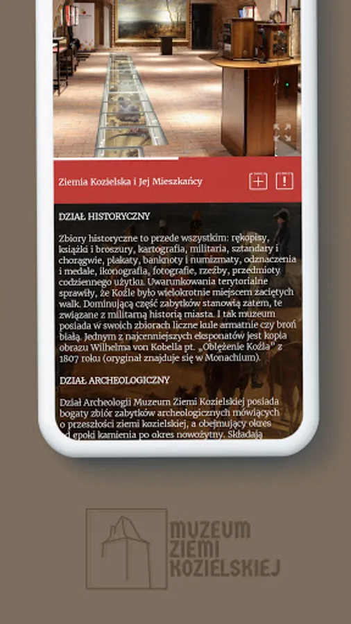 The application allows you to read QR codes under which there is historical and practical information about individual elements of the exhibition and about the entire Museum of the Koźle Land in Kędzierzyn-Koźle.