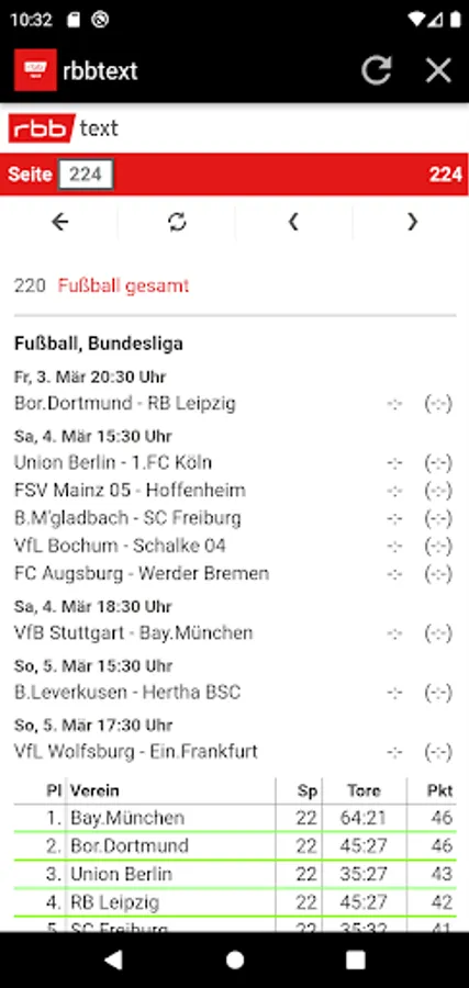 In rbbtext you will find the latest news, sports and weather every day. Plus up-to-date program information on rbb television.