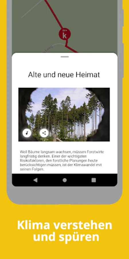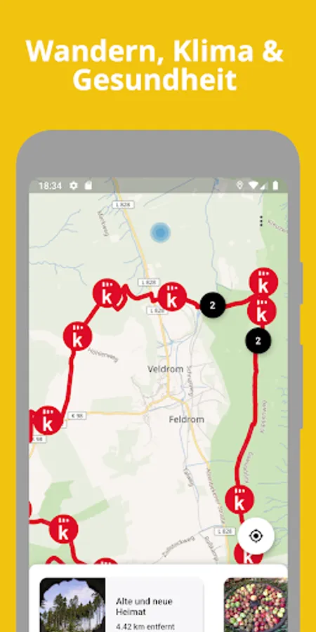 With the help of the app KlimaErlebnisWandern you are not only always on the right track thanks to GPS, you also get interesting information in from text, picture and podcast at the stations of the KlimaRouten. Especially the listening stories convey an exciting impression in the world of the climate.