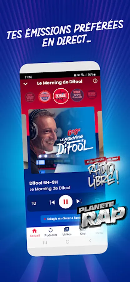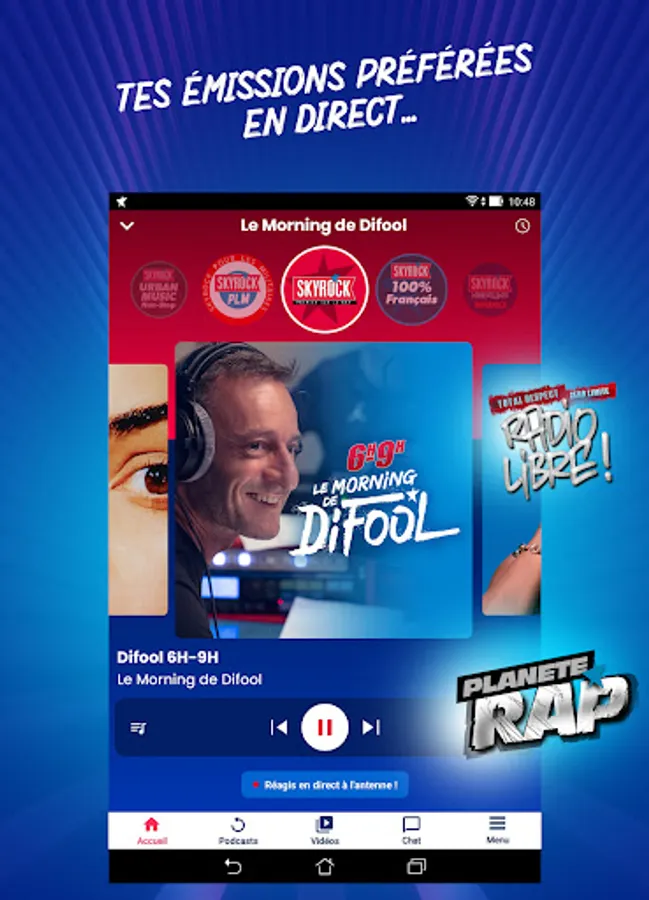 • Programs: find Le Morning de Difool, La radio libre, Planète Rap, and all the other Skyrock programmes.