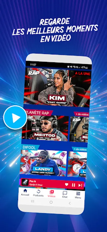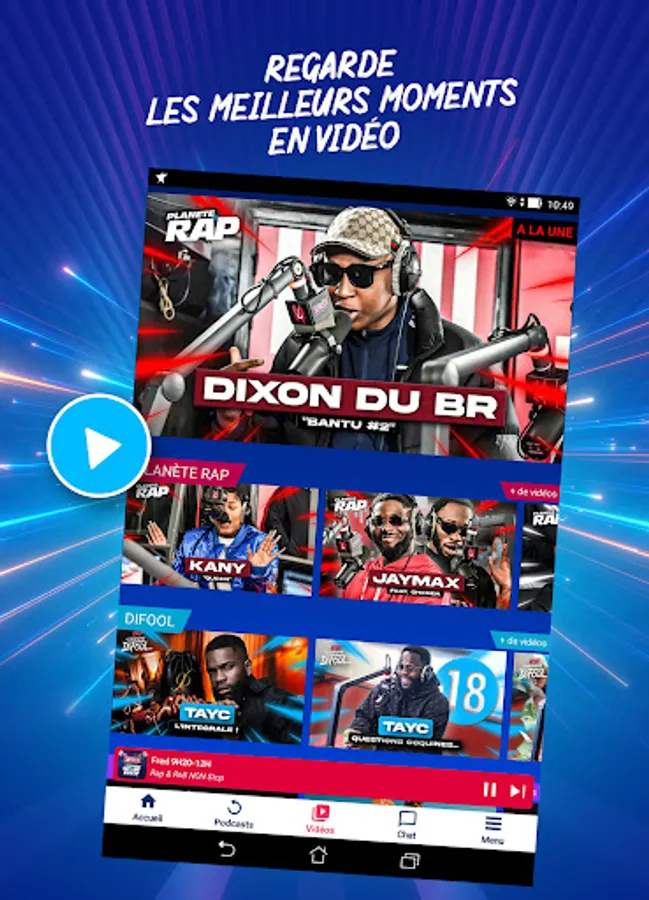 And every evening at 8 p.m. there is the live video of Planète Rap, the reference rap show. Live from the studio, experience the show from the inside, as if you were there!