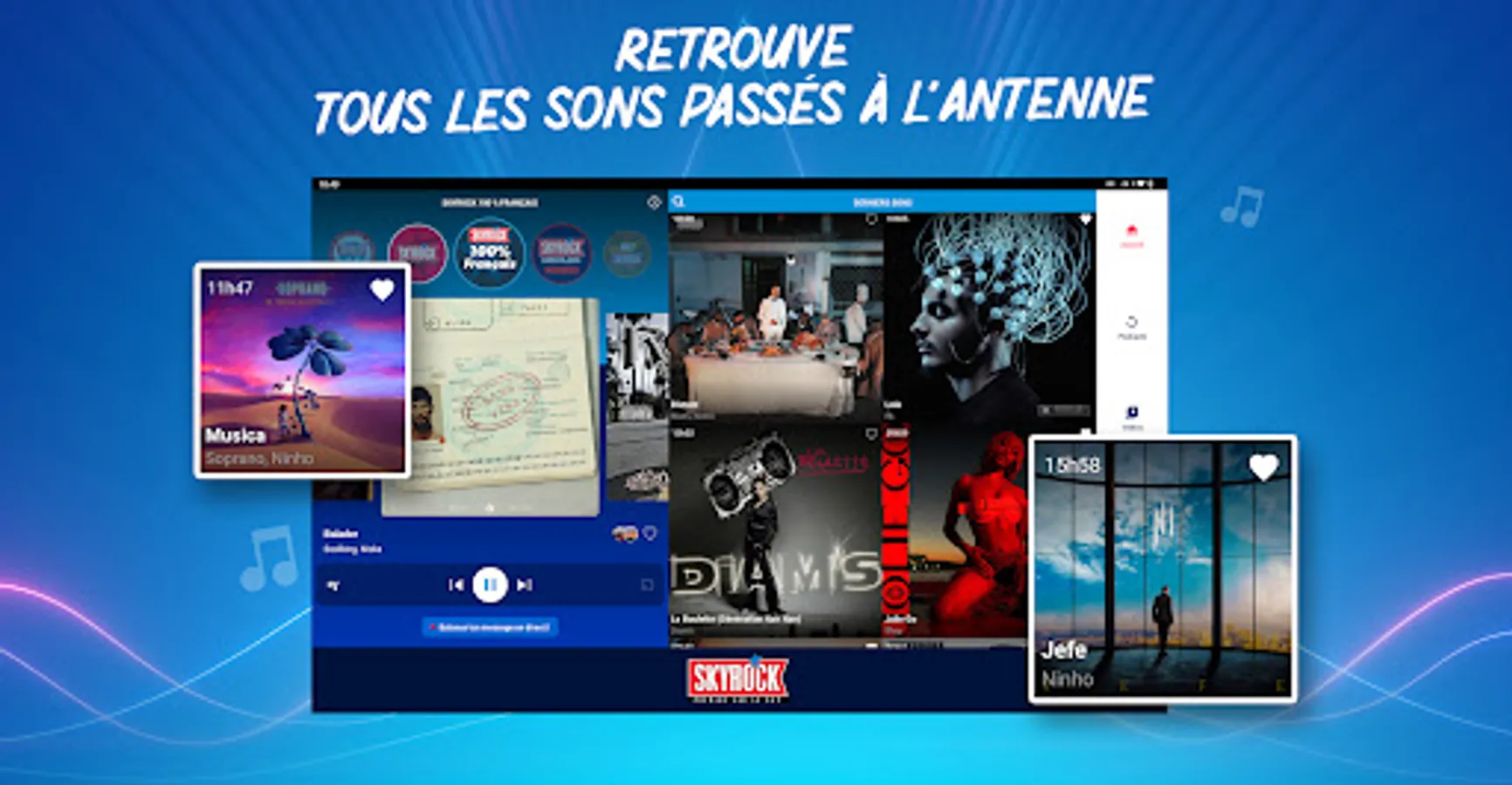 • The latest sounds: find all the sounds that have aired on Skyrock in one click.